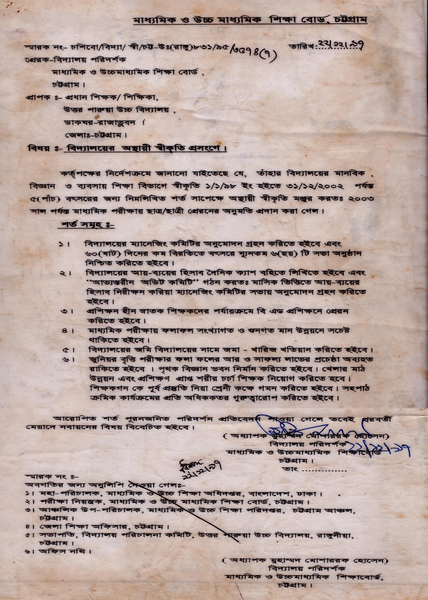 School Code : 4032 Uttar Parua, Rangunia, Chittagong; 01309104815