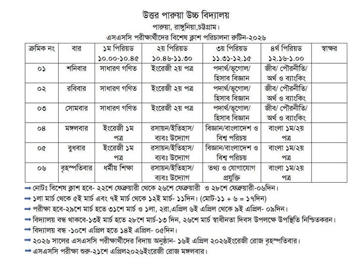 এসএসসি পরীক্ষার্থীদের বিশেষ ক্লাশ সংক্রান্ত নোটিশ