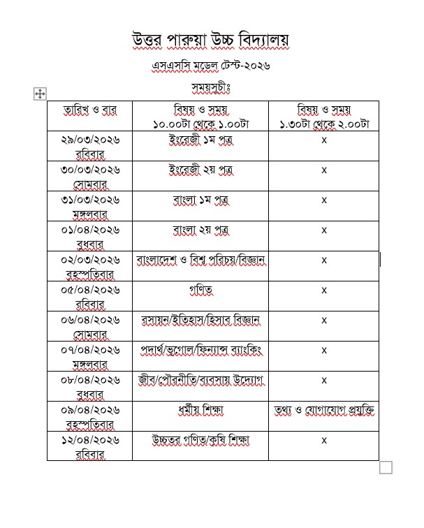 এসএসসি পরীক্ষার্থীদের চুড়ান্ত মডেল টেস্ট রুটিন।